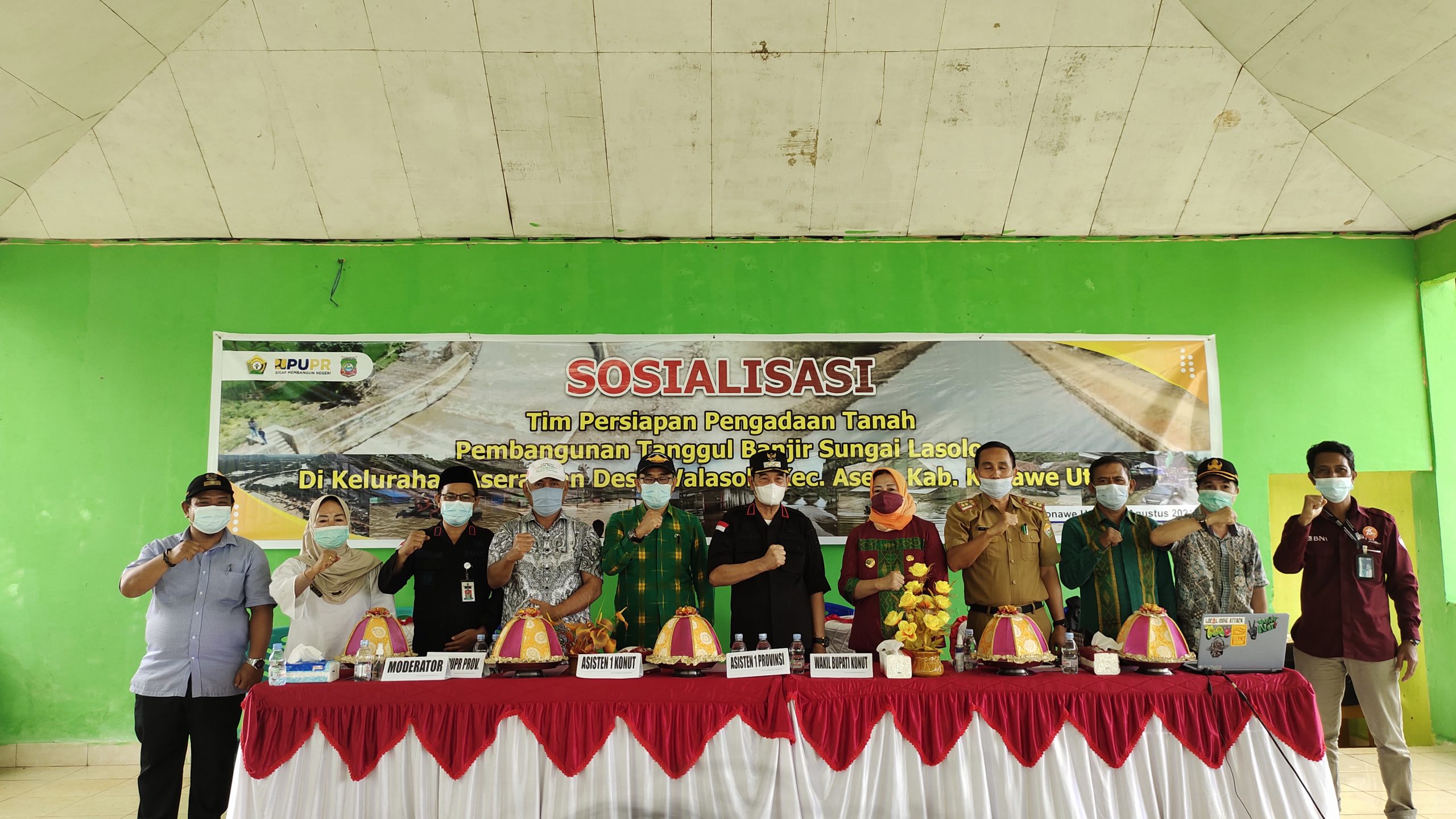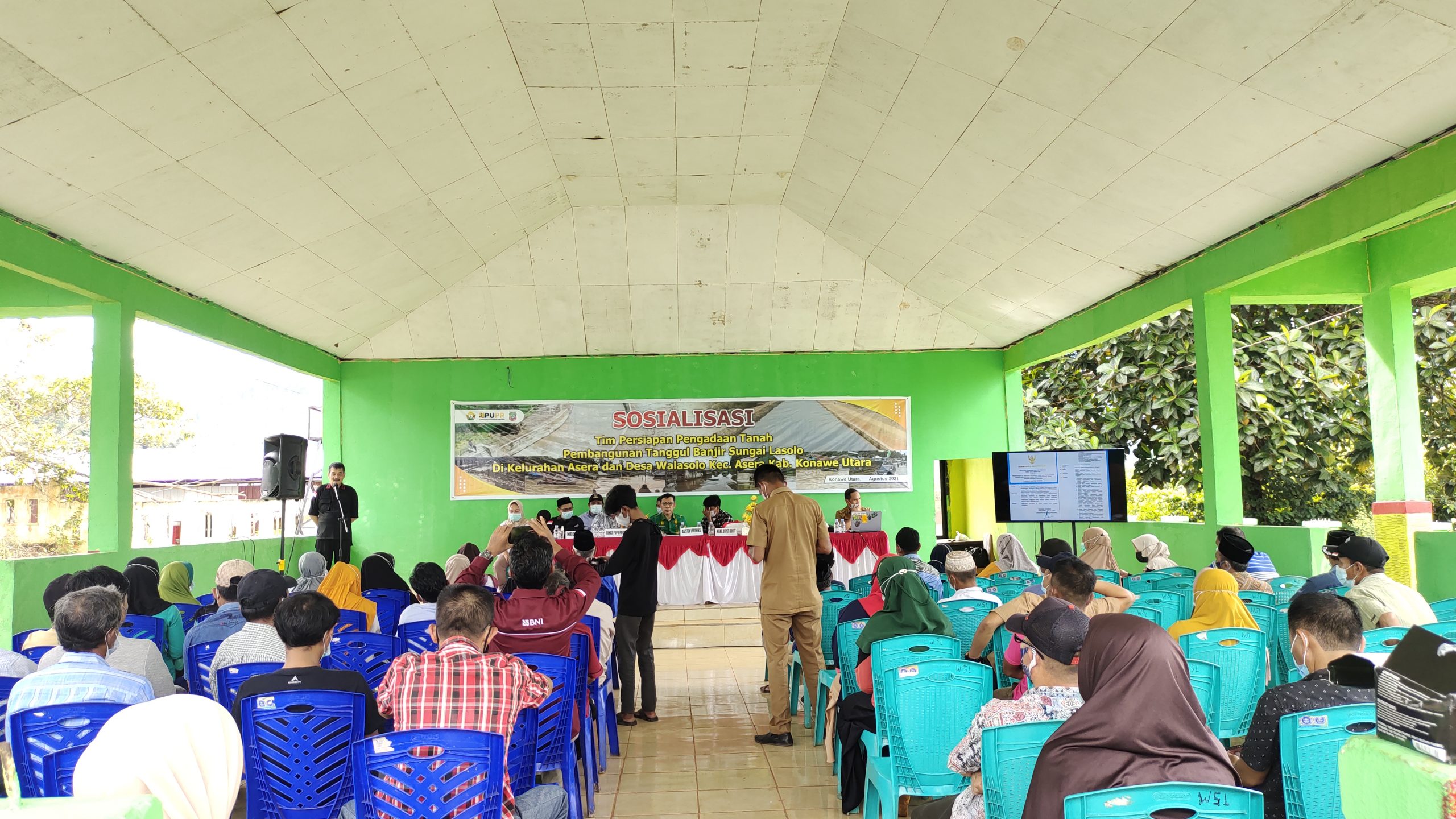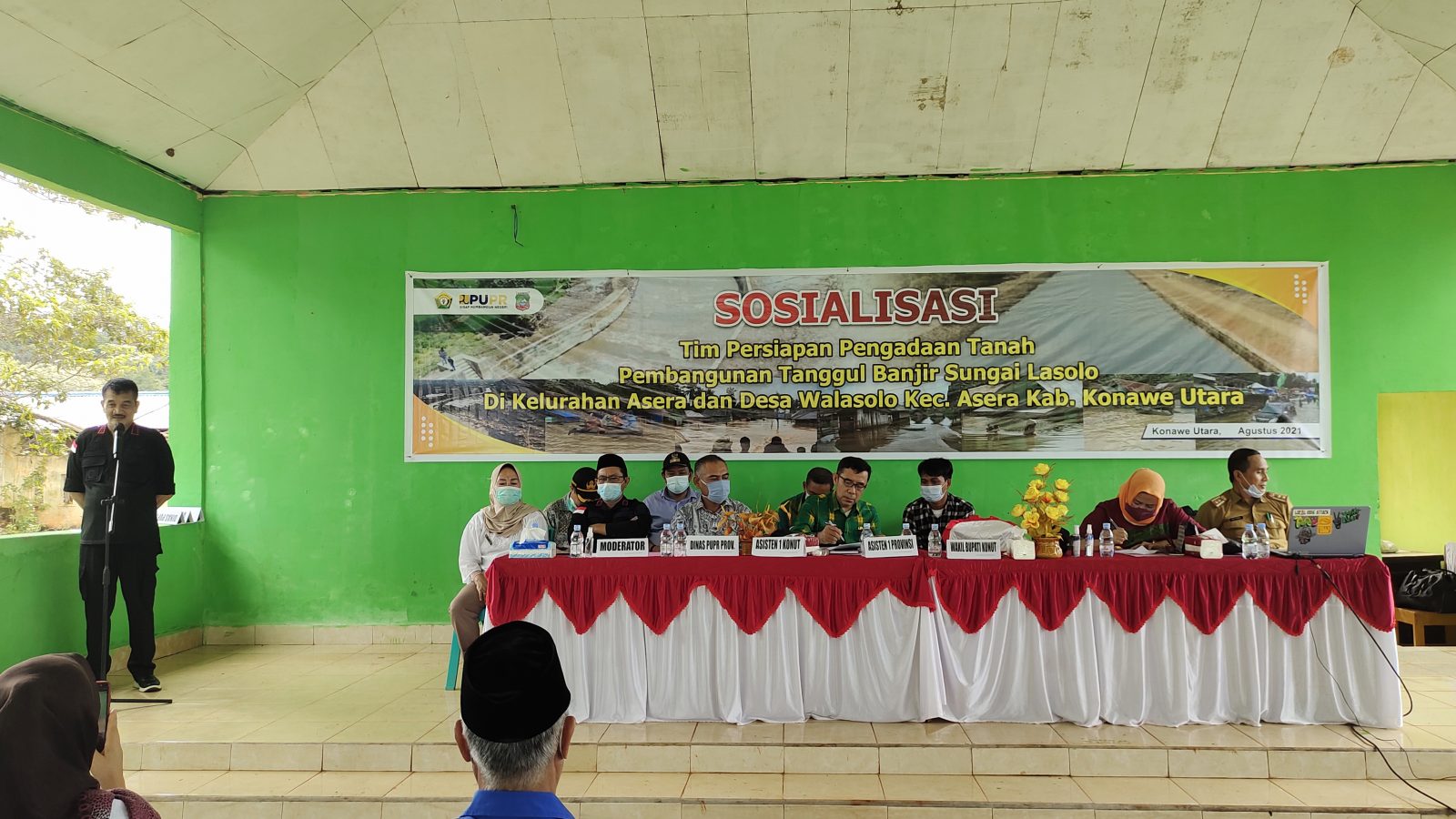 Hal itu dibuktikan dengan berlangsungnya sosialisasi tim persiapan pengadaan tanah pembanguan tanggul banjir yang berlangsung di Balai Kantor Kecamatan Asera, Jumat (27/8/2021).