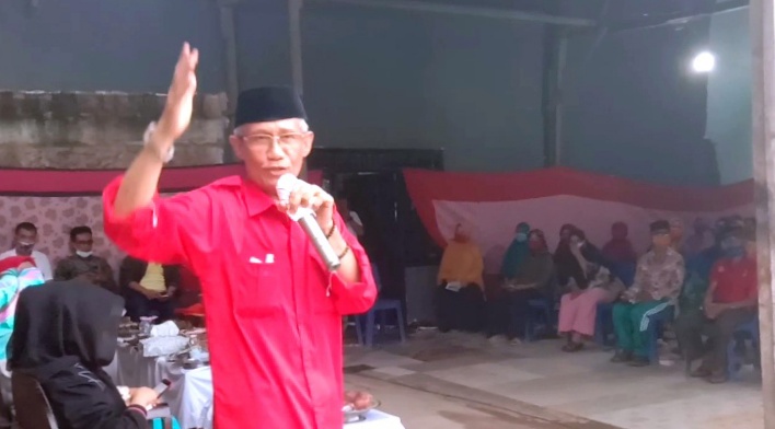 Ketgam: Ketua DPD l Sultra Partai PDIP, Lukman Abunawas saat memberikan orasi politiknya dalam acara kampanye terbatas paslon Bupati dan Wakil Bupati Konut, Ruksamin-Abu Haera di Desa Waworaha, Lalowaru dan Andomowu.(Foto:Indosultra.Com).