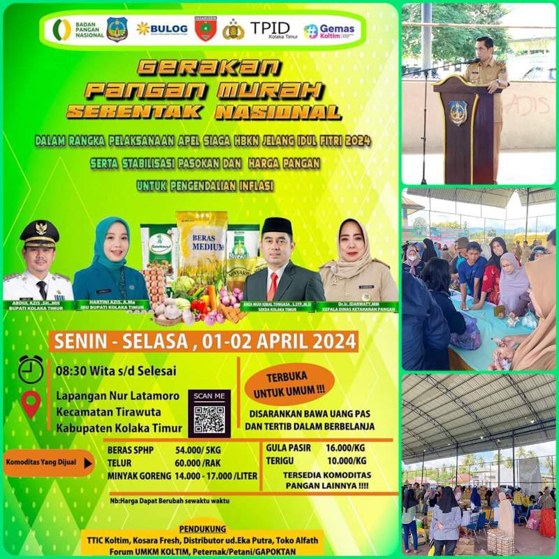 Kegiatan pasar murah ini, yang dilaksanakan di Lapangan Nur Latamoro Kelurahan Rate-rate, merupakan sebuah inisiatif nasional yang dibuka oleh Pelaksana Harian (Plh) Bupati Kolaka Timur, Andi Muh. Iqbal Tongasa, S.STP., M.Si. Turut hadir dalam acara tersebut unsur TNI/Polri, sejumlah pimpinan OPD, dan instansi terkait.