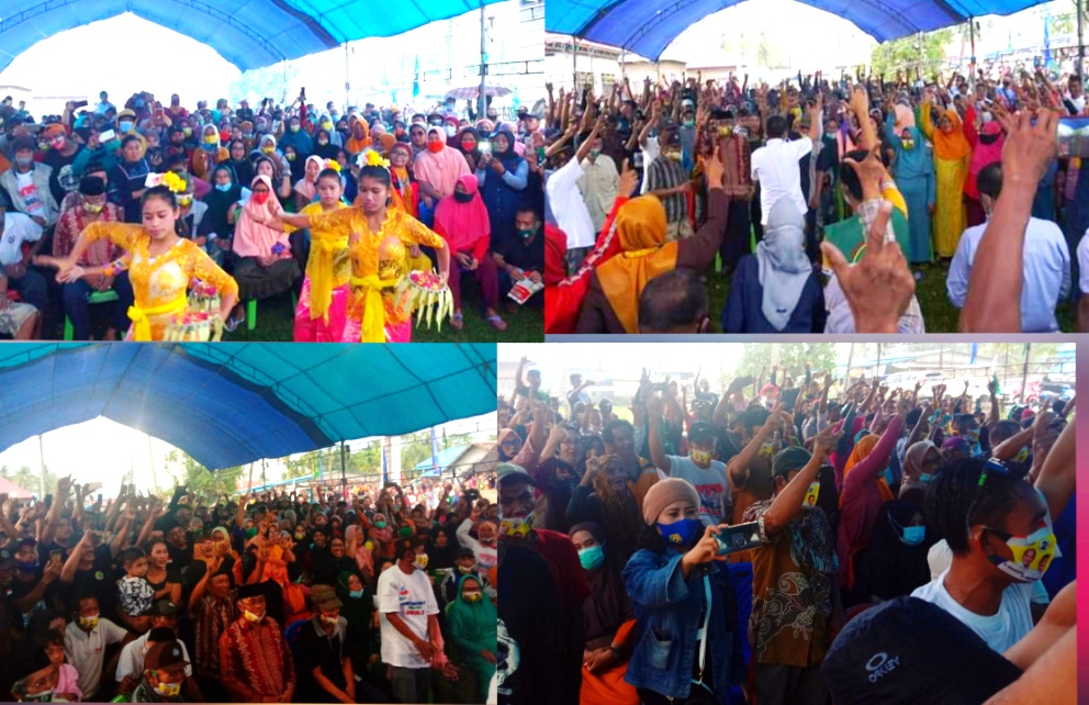 Indosultra.Com, Konawe Utara-Kampanye akhir pasangan calon (paslon) Bupati dan Wakil Bupati Konawe Utara (Konut), Ruksamin-Abu Haera di Desa Tongauna, Kecamatan Sawa yang berlangsung, Kamis (26/11/2020) menyatukan seluruh element masyarakat dari berbagai komunitas milenial, organisasi masyarakat dan Tokoh-Tokoh Masyarakat dari berbagai suku dan agama.