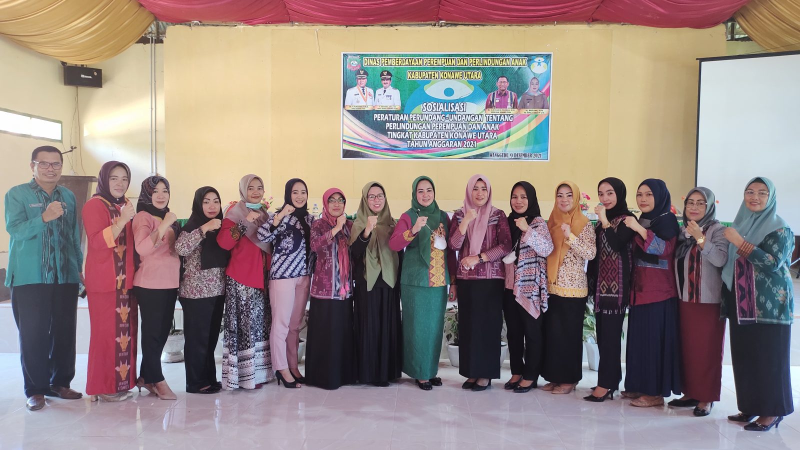 Ketgam: Tim Dinas PPPA Konut saat foto bersama usai menggelar sosialisasi Undang-undang perlindungan anak dan perempuan.(Indosultra.Com)