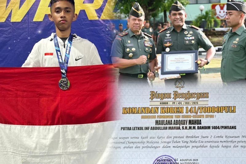 Indosultra.Com, Pinrang – Maulana Abqary Mahua yang merupakan anak pertama dari Dandim 1404/Pinrang Letkol Inf Abdullah Mahua, S.H.I., M.M., dengan Ketua Persit Kartika Chandra Kirana Cabang XXXIX Kodim 1404/Pinrang Ny. Dera Abdullah Mahua sukses membawa nama harum Negara Republik Indonesia khususnya dikalangan pelajar.