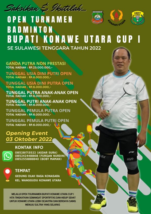 Salah satunya, Turnament Badminton Kapolres Cup l dan ll, serta Turnament Badminton Bupati Konut Cup l se-Sulawesi Tenggara. 2 ivent yang di gagas Kasim Pagala bersama Kapolres Konut dan Ketua PBSI ini mampu membawa nama Konut melejit ke mana-mana.