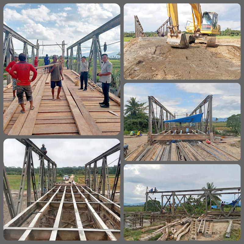 Pekerjaan pemasangan konstruksi jembatan dilakukan dengan cara manual, menggunakan tenaga manusia dan alat bantu seperti takel, dongkrak hidrolik, serta peralatan tukang lainnya. Proses ini menjadi tantangan tersendiri, namun dengan semangat gotong-royong dan kerja keras, jembatan yang menggunakan konstruksi Bailley dengan panjang bentangan 30 meter akhirnya selesai pada akhir tahun 2024 ini.