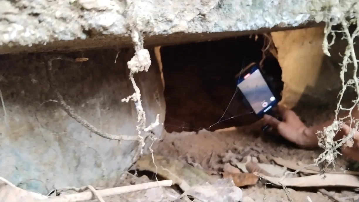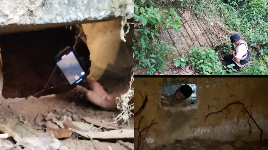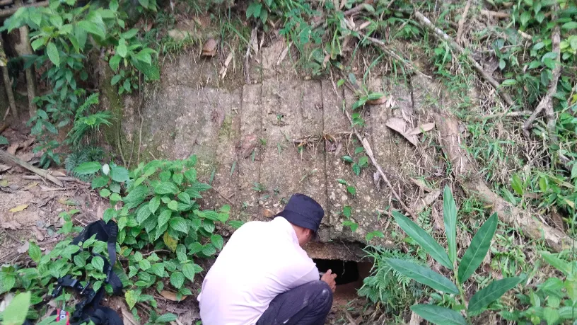 Untuk masuk ke dalam bunker tim harus melewati lubang yang sempit dengan tiarap. Kelembaban dari dalam bunker sangat terasa. Beberapa akar pohon menembus dinding bunker melalui sela-selanya.
