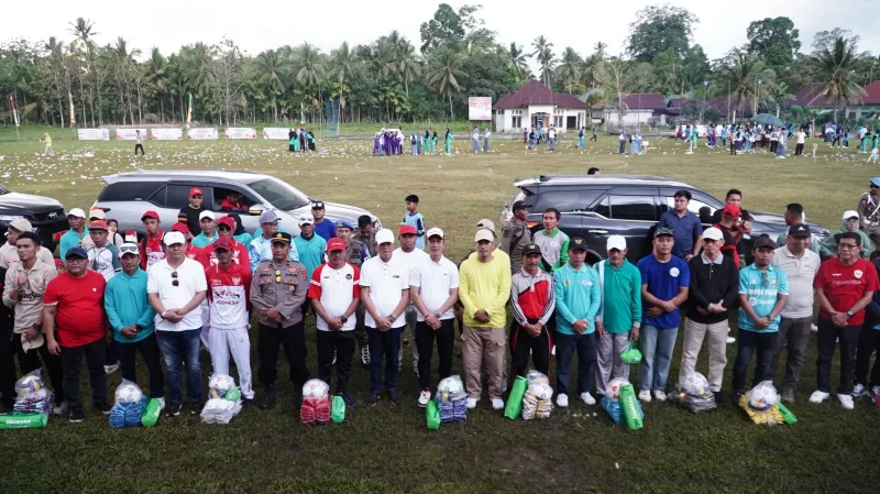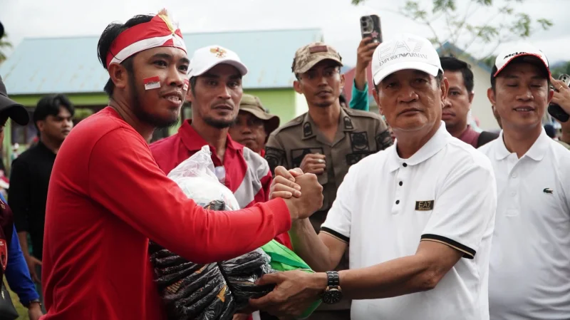 Sebagai bentuk dukungan nyata terhadap pembinaan olahraga di tingkat desa, Bupati Ikbar menyerahkan bantuan seragam olahraga kepada masing-masing kepala desa se-Kecamatan Lembo. Penyerahan ini disaksikan langsung oleh Wakil Bupati Abu Haera, Ketua DPRD Herman Sewani, serta para hadirin yang memadati area lapangan.