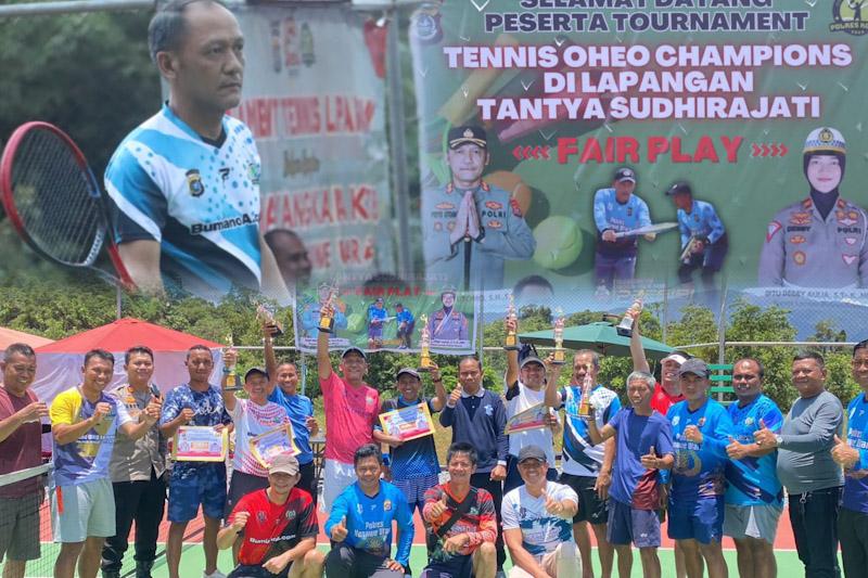 Hasil turnamen tenis oheo champion pasangan Kapolres Konut dan yoyo keluar sebagai juara pertama setelah laga final berhadapan pasangan Kama-Irfan sebagai juara kedua