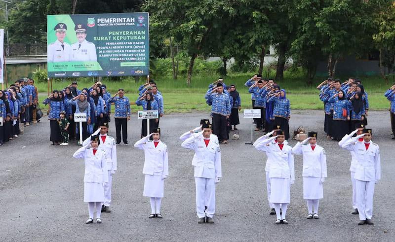 Indosultra.Com, Konawe Utara – Bupati Konawe Utara (Konut), Ikbar, SH.,MH memimpin langsung upacara peringatan Hari Lahir Pancasila (2/6/2025) bertempat di halaman Kantor Bupati.