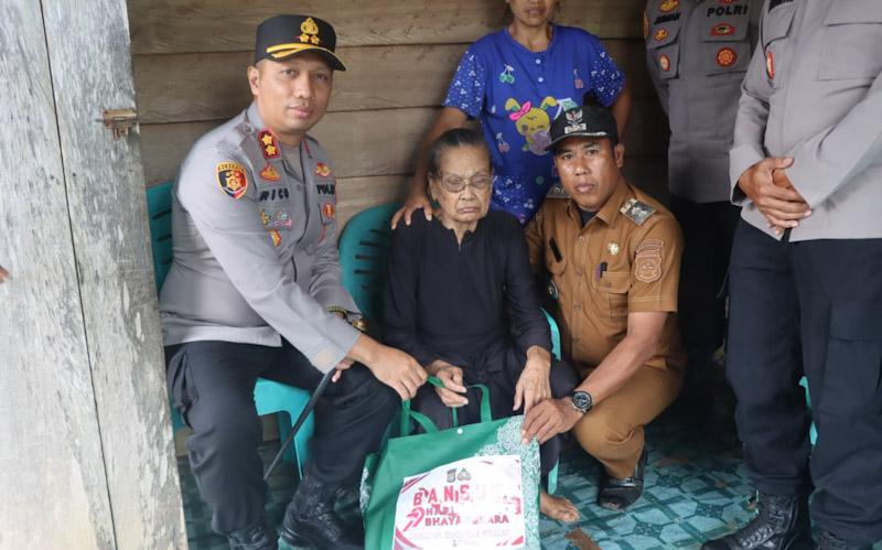 Sejumlah Lansia dan masyarakat kurang mampu mendapat bantuan paket sembako (sembilan bahan pokok) yang diserahkan langsung Kapolres Konawe utara AKBP Rico Fernanda