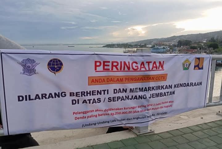Indosultra.com, Kendari – Sebuah spanduk peringatan mencolok perhatian warga yang melintasi Jembatan Teluk Kendari, Jumat (30/5/2025). Spanduk tersebut berisi larangan keras untuk parkir atau berhenti di atas jembatan ikonik tersebut.