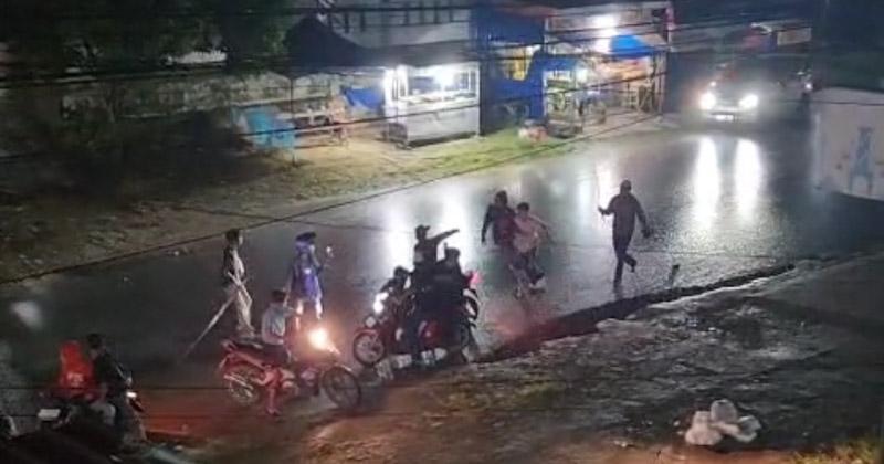 Dalam rekaman video yang beredar di media sosial, terlihat para remaja dari dua kubu saling ejek sambil mengacungkan senjata tajam jenis celurit berukuran besar dan balok ke arah lawan. Aksi brutal itu sontak membuat warga sekitar panik dan berlarian menghindar dari lokasi kejadian.