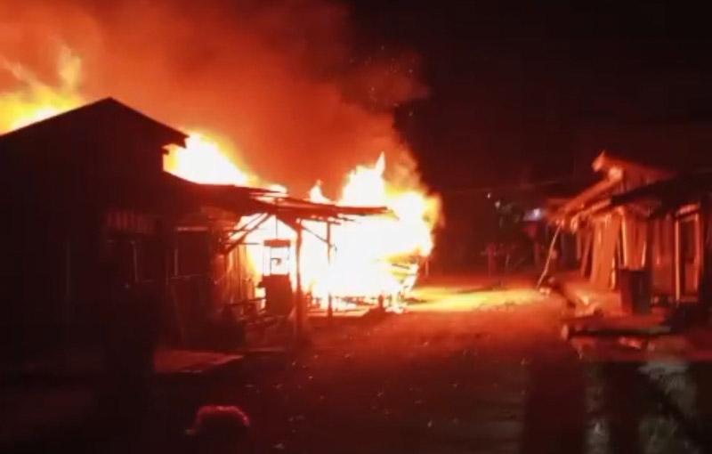 ‎Beberapa bangunan kios terlihat sudah dikepung api, sementara warga hanya bisa menyaksikan dengan pasrah karena kobaran api begitu cepat membesar.