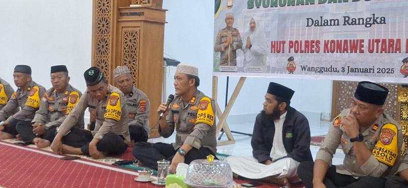 Indosultra.Com, Konawe Utara — Kepolisian resor (Polres) Konawe Utara melaksanakan syukuran dan doa bersama dalam rangka hari ulang tahun (HUT) ke-5 bertempat di masjid Miftahul Faizin Polres Konut, Jumat (3/01/25) sekira pukul 16.00 wita.