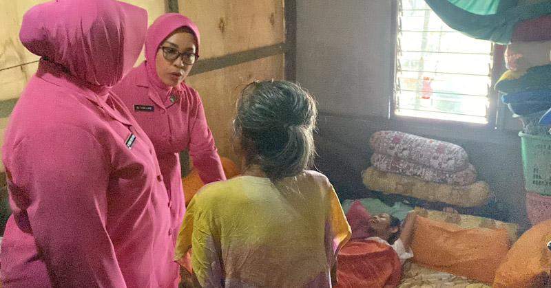 Selain menyambangi pensiunan Polri dan warakawuri Ketua Bhayangkari cabang bersama pengurus mengunjungi rumah warga kurang mampu di wilayah Kecamatan Lasolo