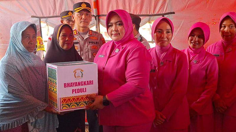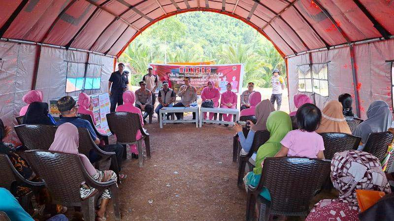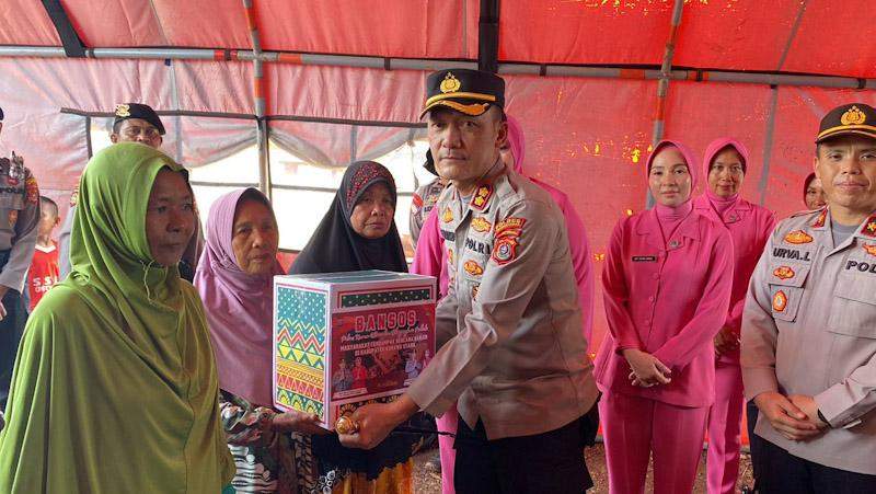 Penyerahan bantuan sosial kepada warga terdampat banjir dihadiri Wakapolres Kompol Urva Lomansyah, S.Si., S.I.K., M.H bersama wakil ketua Bhayangkari cabang Ny. Vivin Urva Lomansyah, Para Kabag dan Kasat, Kapolsek Asera serta Kepala Desa Puuwanggudu