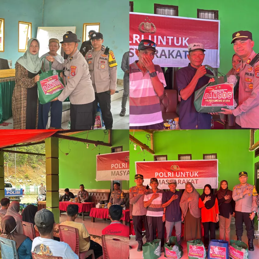 Indosultra.Com, Konawe Utara – Kepala Kepolisian Resor (Kapolres) Konawe Uara (Konut) AKBP Rico Fernanda, S.H., S.I.K., M.H serahkan bantuan sosial Polres Konut Peduli kepada warga korban bencana banjir di Kecamatan Asera, Kamis (24/04/25)
