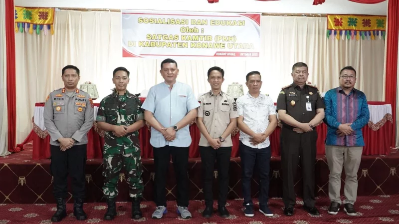 Indosultra.com, Konawe Utara – Bupati Konawe Utara (Konut), Ikbar,SH.,MH secara resmi menyambut kedatangan Tim Satuan Tugas Penertiban Kawasan Hutan Republik Indonesia (Satgas PKH) di Aula Kantor Bupati Konawe Utara, Kamis (16/10/2025).