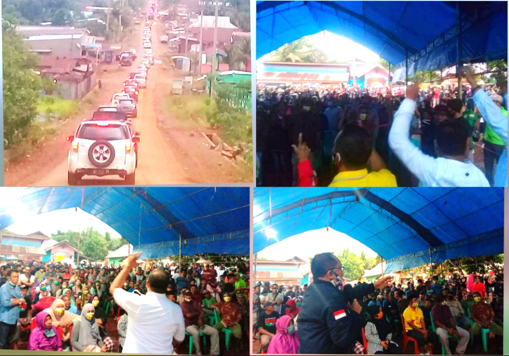 Indosultra.Com, Konawe Utara-Pendukung pasangan calon (paslon) Bupati dan Wakil Bupati Konawe Utara (Konut) Ruksamin-Abu Haera tagline “Rabu” membludak diacara kampanye terbatas akhir di Desa Morombo dan Morombo Pantai, Kecamatan Lasolo Kepulauan.