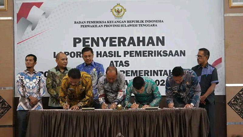 Laporan Hasil Pemeriksaan (LHP) tersebut diserahkan langsung Kepala BPK RI Perwakilan Sultra Dadek Nandemar kepada Bupati Konawe Utara, Ruksamin diwakili Wakilnya, Abuhaera, di Kantor Perwakilan BPK RI Sultra Kendari, Rabu, (22/05/2024)