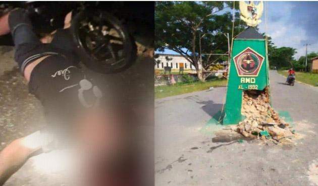 Seorang pengendara motor Jamaludin asal warga kelurahan Waumere, kecamatan Tiworo Kepulauan Kabupaten Muna Barat tewas setelah motor yang di kendarai nya menabrak tugu AMD.
