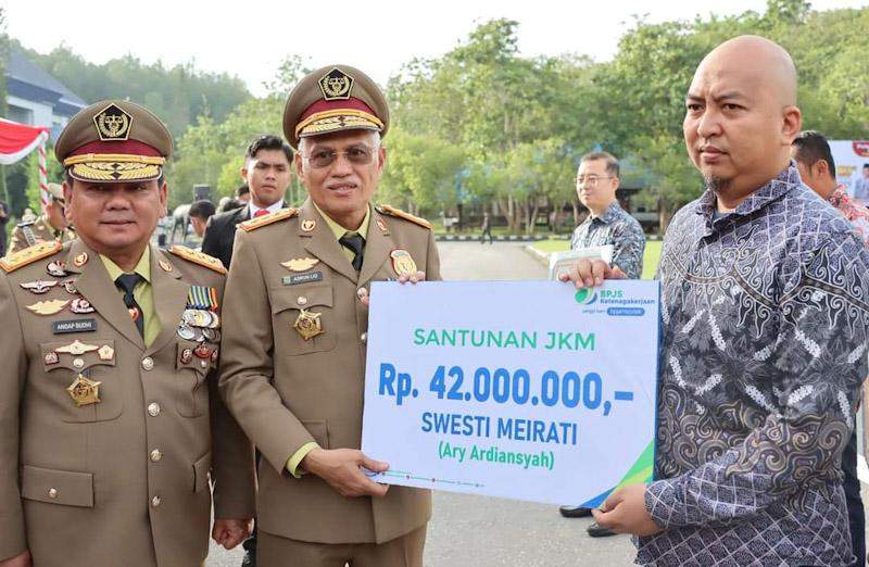Indosultra.Com, Kendari – Peringati Bulan Keselamatan dan Kesehatan Kerja (K3) Nasional Tahun 2024, Pejabat (Pj) Gubernur Sulawesi Tenggara (Sultra) Andap Budhi Revianto menyerahkan penghargaan kepada 3 Perseroan Terbatas (PT) di Sultra dengan jumlah jam kerja kecelakaan nihil dan Santunan Program Jaminan Kematian (JKm).