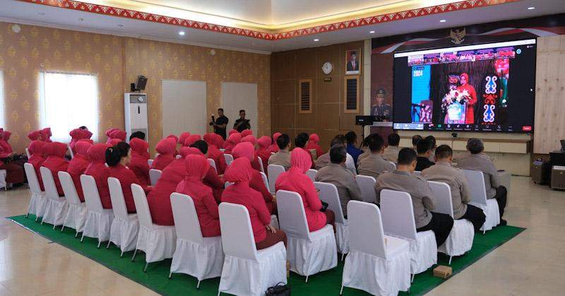 Zoom meeting berlangsung di Aula Dachara Polda Sultra yang turut dihadiri oleh Kapolda Sultra Brigjen Pol Dwi Iriyanto, S.I.K., M.Si, pejabat utama Polda Sultra beserta pengurus Bhayangkari Sultra.