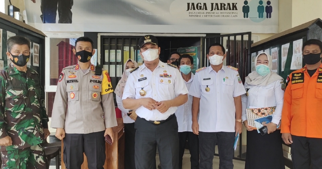 Ketgam: Bupati Konut, Ruksamin yang juga sebagai Ketua Satgas Covid-19 bersama Wakil Bupati Konut, Kapolres Konut dan pihak TNI saat memantau pelaksanaan vaksinasi dilapangan.(Indosultra.Com)