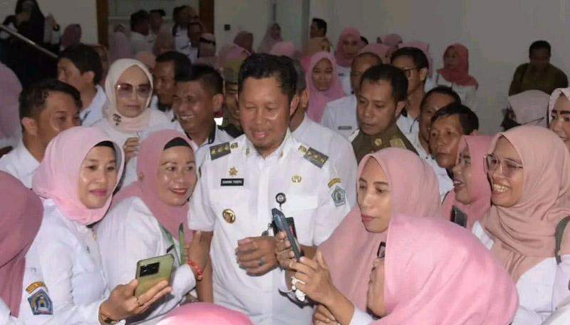 Diacara itu, Asmawa Tosepu tak lupa menyalami ribuan para ASN lingkup Kota Kendari. Sejumlah pegawai terlihat menangis haru sembari memeluknya.