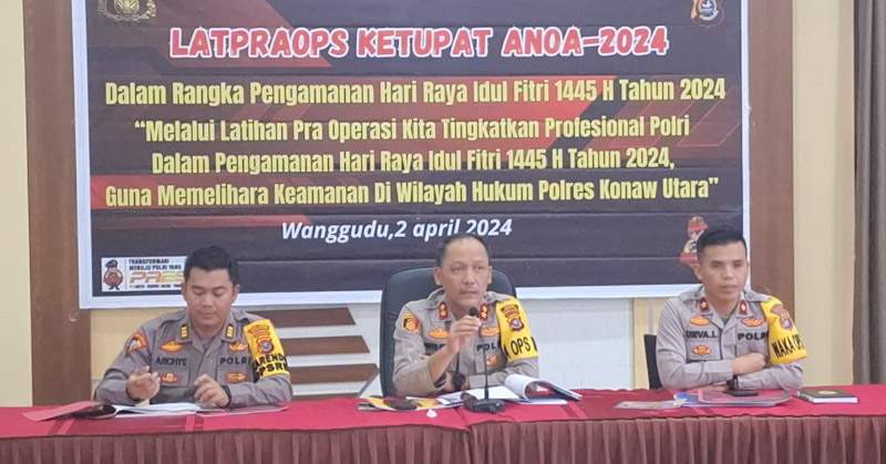 Indosultra.Com, Konawe Utara – Kepala Kepolisian Resor Konawe utara AKBP Priyo Utomo, S.H., S.I.K memimpin kegiatan latihan pra operasi ketupat anoa 2024 yang diadakan Bagian Operasional (BagOps) Polres Konawe utara, rabu (3/4/24) sekira pukul 16.00 wita