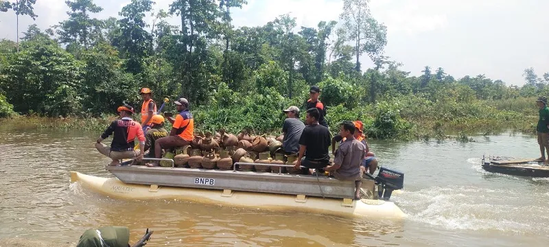 Rakit pincara dioperasikan oleh tim penanganan banjir gabung Pemda Konut dari BPBD, Damkar, Perhubungan, Satpol PP, Kodim 1430, Polres gabungan Polsek, Pramuka, Forum Pengurangan Risiko Bencana (F-PRB) dan ORARI.