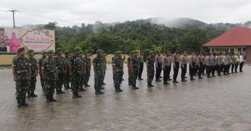 Apel Gabungan Sinergitas TNI Polri bertempat di Mako Polres Konawe Utara Kelurahan Wanggudu, dipimpin langsung Komandan Kodim (Dandim) 1430 Bapak Letkol Kav. Sofyan dan Bapak Kapolres Konut AKBP Priyo Utomo, S.H., S.I.K
