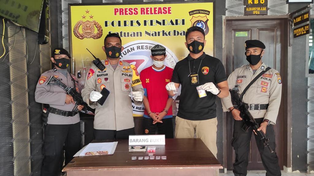 Indosultra.com, Kendari – Kepolisian Resort (Polres) Kota Kendari, Sulawesi Tenggara (Sultra), kembali membekuk kurir narkoba inisial KE (22) di jalan Lumba-Lamba, Kelurahan Lalolara Kecamatan, Kambu Kota Kendari. Aksi itu berlangsung pada Rabu (3/3/2021).