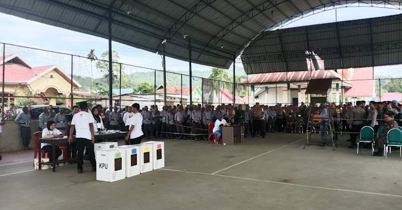 Simulasi ini bertujuan meningkatkan keterampilan dan koordinasi antar petugas dalam menghadapi potensi gangguan keamanan selama pemungutan suara.