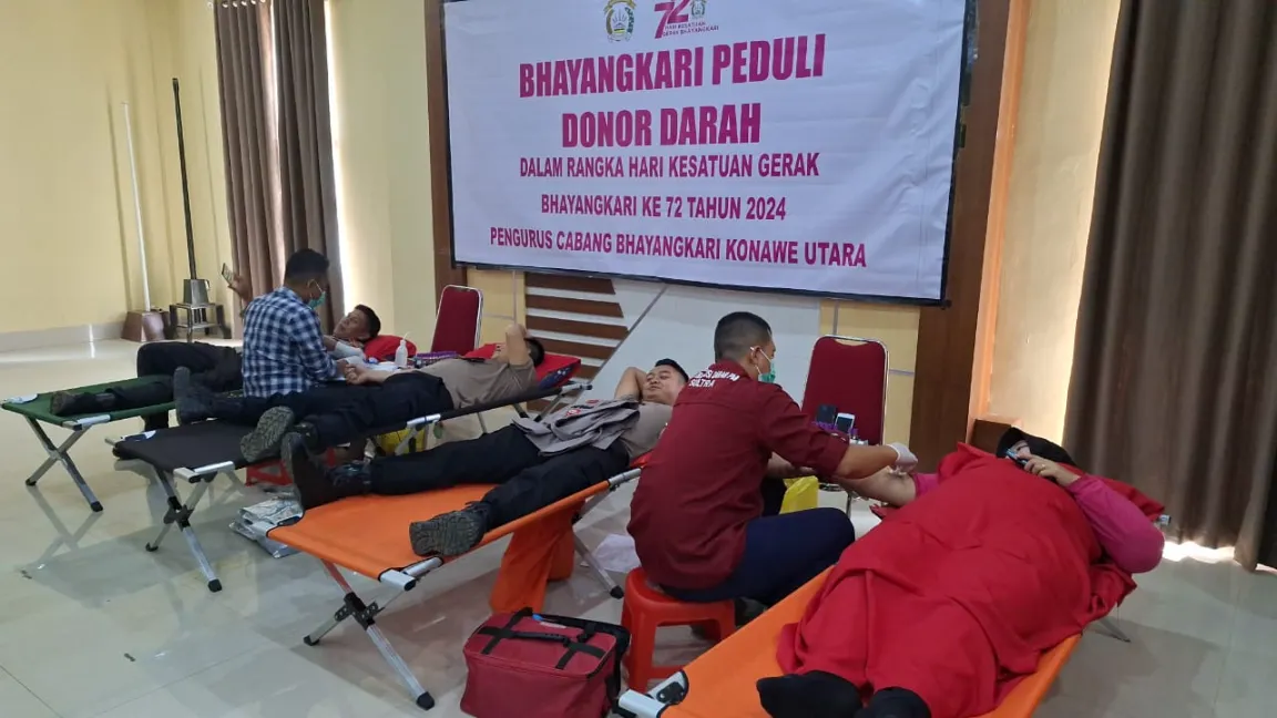 Donor darah merupakan inisiasi Kapolres Konut A-KBP Priyo Utomo, S.H., S.I.K bersama Ketua Bhayangkari Cabang Konawe utara Ny. Rosana Priyo Utomo dalam rangka menyambut hari bhayangkara polri dan HKGB