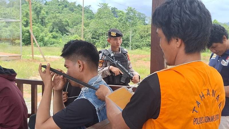 Kepolisian Resor (Polres) Konawe utara (Konut) melalui Satuan Reserse Kriminal (Reskrim) menggelar kegiatan Rekonstruksi perkara tindak pidana pembunuhan yang terjadi di Desa Toreo Kecamatan Wawolesea Kabupaten Konawe utara dengan tersangka AB (39), Minggu (28/4/24) sekira pukul 11.00 Wita