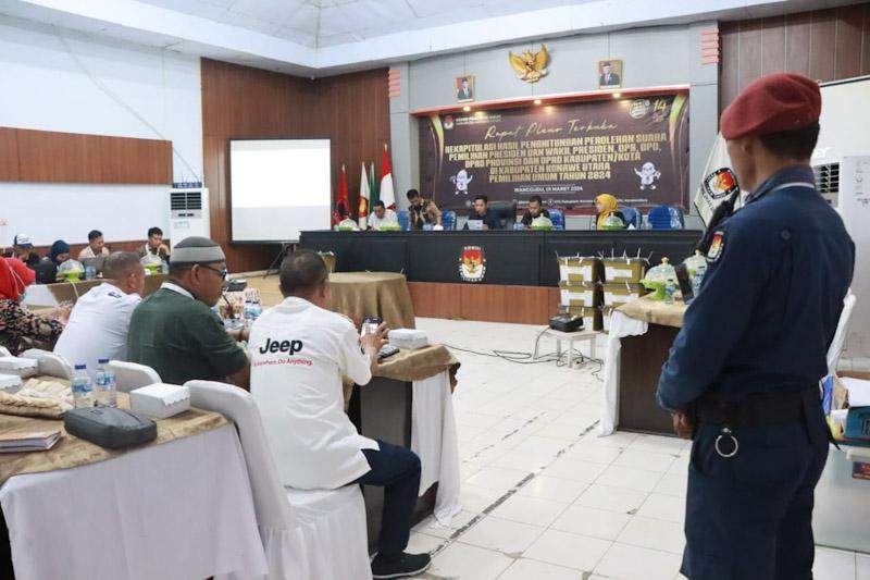 Rapat pleno terbuka rekapitulasi perolehan suara Pemilu 2024 bertempat di Aula KPUD Konut Kelurahan Wanggudu, Kecamatan Asera Kabupaten Konawe Utara