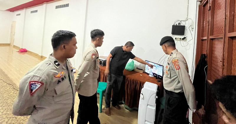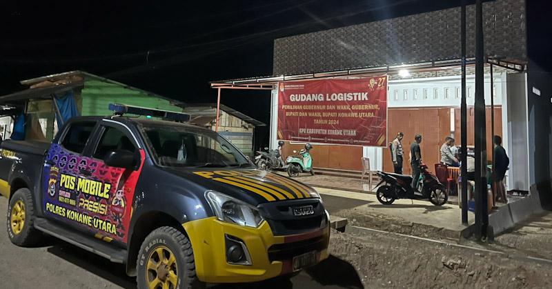 Dipimpin perwira pengawas (pawas) Kabaglog AKP La Ampi tim patroli pos mobile menyasar kantor KPU, Bawaslu, gudang logistik, alun-alun konasara serta lokasi lolu umum di desa anggolohipo kecamatan andowia kabupaten konawe utara, kamis (7/11/24) pukul 00.35 wita