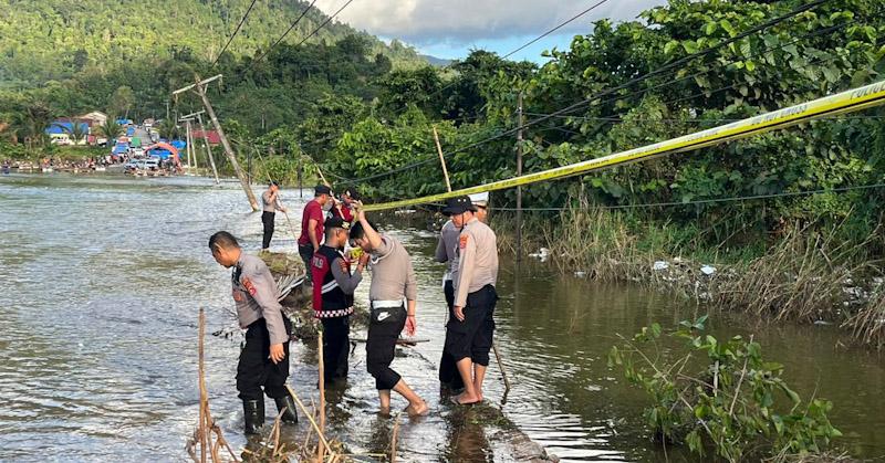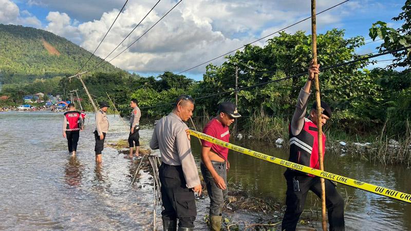 Kapolres Konawe utara AKBP Priyo Utomo, S.H., S.I.K menginstruksikan personel yang bertugas mengatur dan mengamankan warga yang sedang antri guna melintasi lokasi banjir agar mengutamakan keamanan dan keselamatan masyarakat