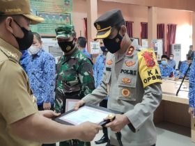 Ketgam: Kapolres Konut AKBP Achmad Fathul Ullum saat menerima piagam penghargaan dari Pemerintah Daerah Konut atas peran serta jasa melindungi ...