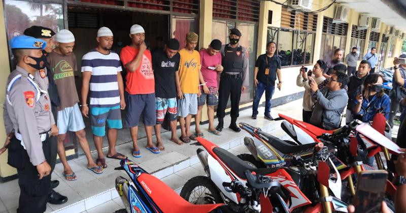 Indosultra.com, Kendari – Enam pelaku spesialis pencurian motor (Curanmor) trail dibekuk tim Buser 77 dari Polresta Kendari di sebuah indekos di kota Kendari. Ke enam pelaku curanmor itu berinisial MY (26) RB (20), MK (34), MI (43), LS (19) dan LT (28).