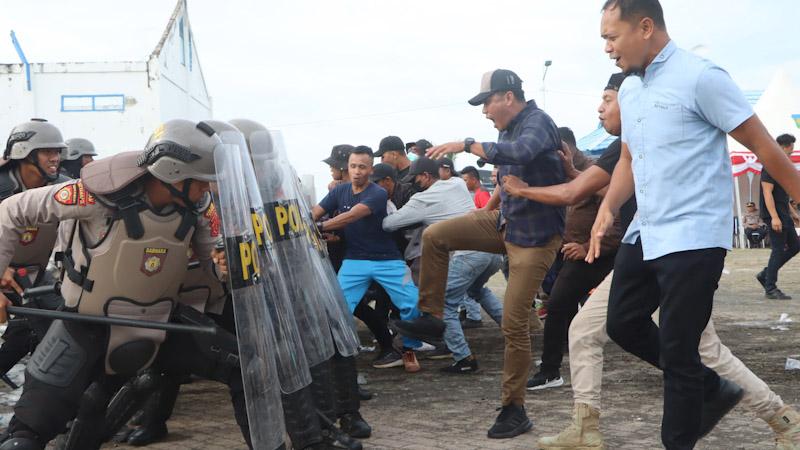 Selain itu, personel gabungan juga memperagakan langkah-langkah tegas kepolisian jika terjadi aksi demontrasi termasuk membubarkan dan mengamankan massa yang dinilai menjadi provokator.