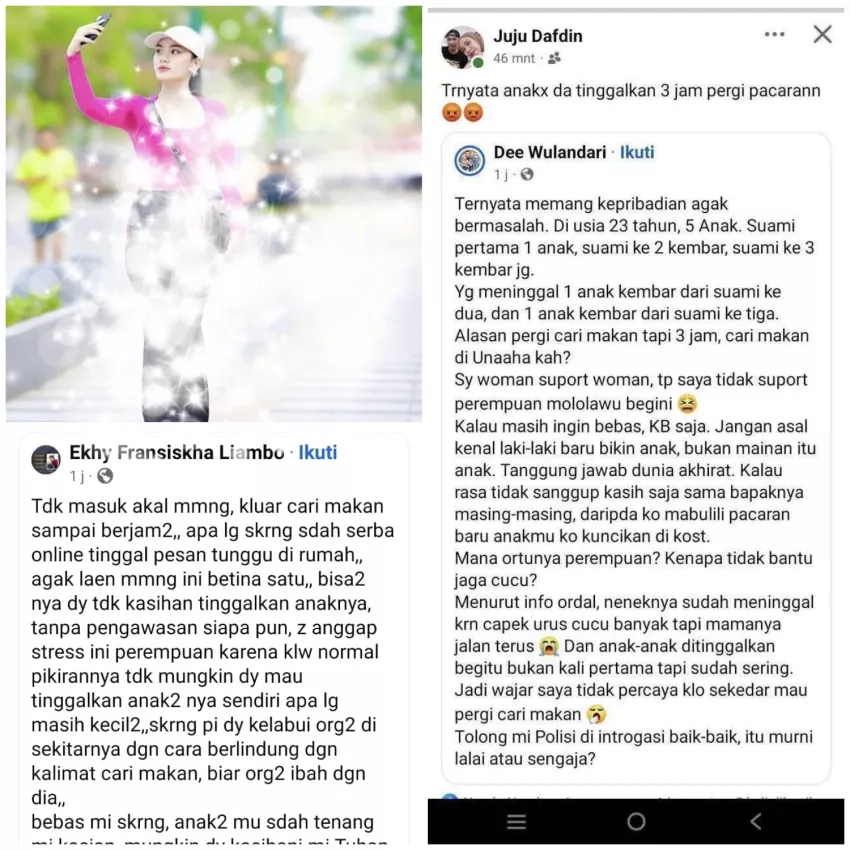 “Tidak masuk akal memang, keluar cari makan sampai berjam-jam. Apa lagi sekarang sudah serba online tinggal pesan tunggu di rumah. Agak lain mmng ini betina satu. bisa-bisanya dia tdk kasihan tinggalkan anaknya, tanpa pengawasan siapa pun, saya anggap stress ini perempuan karena kalau normal pikirannya tidak mungkin dia mau tinggalkan anak-anaknya sendiri apa Ig masih kecil-kecil.”tulis akun Facebook @Ekhy Fransiskha Liambo, Rabu (7/5/2025).