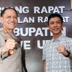 Ketua DPRD Konut, Ikbar Saat menyambut Kapolres Konut AKBP Priyo Utomo saat melakukan silaturahmi di Kantor DPRD Konut, Selasa (10/1/2023).