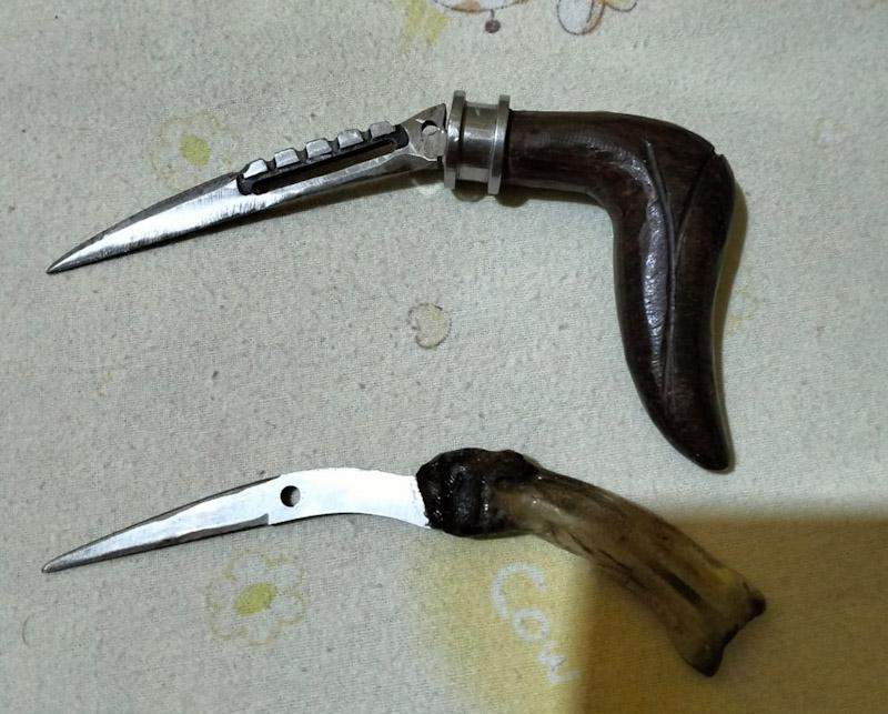 Saat diamankan Polisi menemukan sejumlah barang bukti berupa, 1 Kerambit, 1 pisau yang di buat dari gunting.