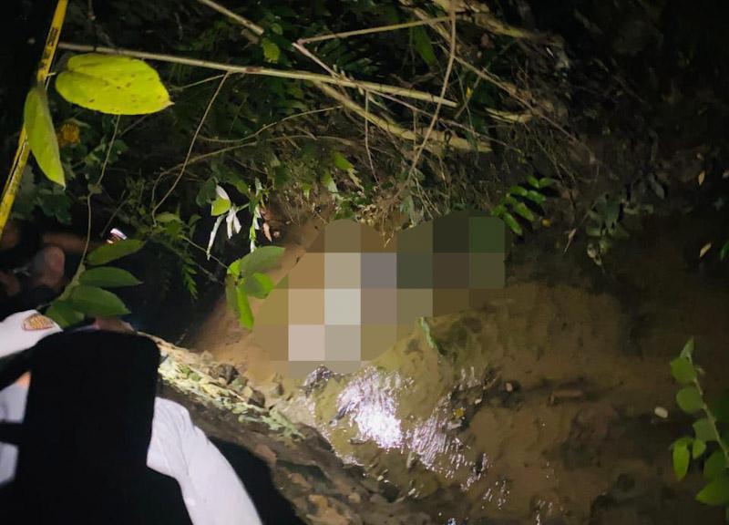 Foto yang diterima media ini, nampak korban menggunakan baju kaus berwarna putih dan celana pendek paduan warna putih, hitam, dan abu-abu. Posisinya korban tengkurap dan berada di sebuah aliran air.