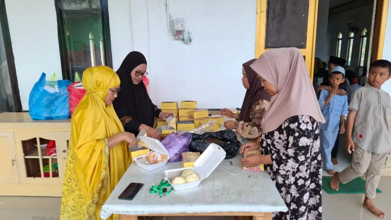 Setelah menunaikan ibadah, para jamaah disambut dengan hidangan makanan gratis yang disiapkan secara gotong‑royong oleh Pemerintah Kelurahan Wanggudu, pengurus masjid dan anggota Majelis Taklim setempat.