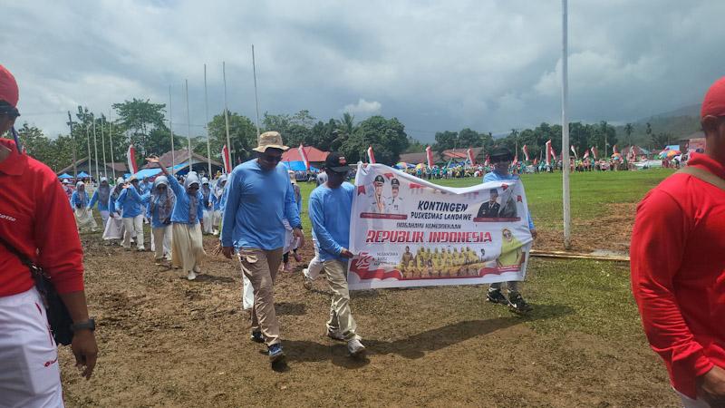 Indosultra.Com, Konawe Utara – Barisan peserta devile Puskesmas Paka Indah, Oheo, Dan Landawe utusan Dinas Kesehatan Kabupaten Konawe Utara (Konut) ini menjadi salah peserta yang tereksis saat pembukaan Pekan Olahraga Dan Seni (Porseni) tingkat kecamatan Oheo dan Langgikima, Kamis 8 Agustus 2024.