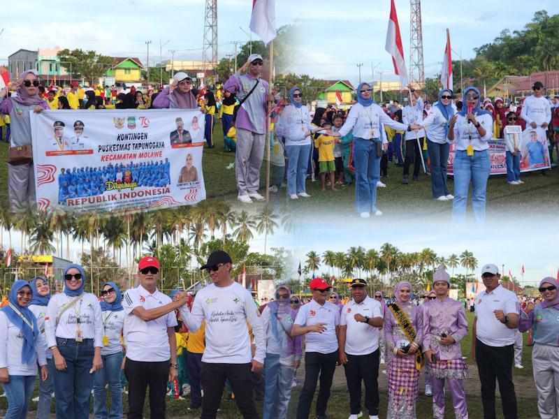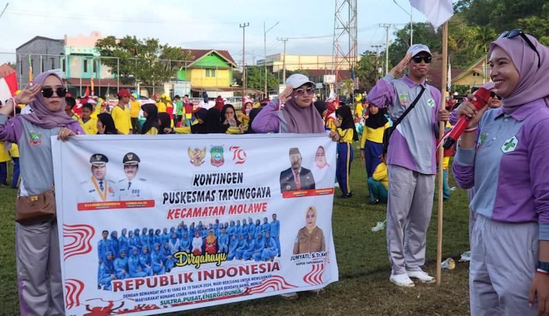 Indosultra.Com, Konawe Utara – Puskesmas Tapunggaya dan Puskesmas Molawe merupakan salah satu peserta devile yang tampil prima untuk mensukseskan pelaksanaan pembukaan Pekan Olahraga Dan Seni (Porseni) tingkat kecamatan yang berlangsung di Lapangan Sepak Bola Molawe, Rabu 7 Agustus 2024.