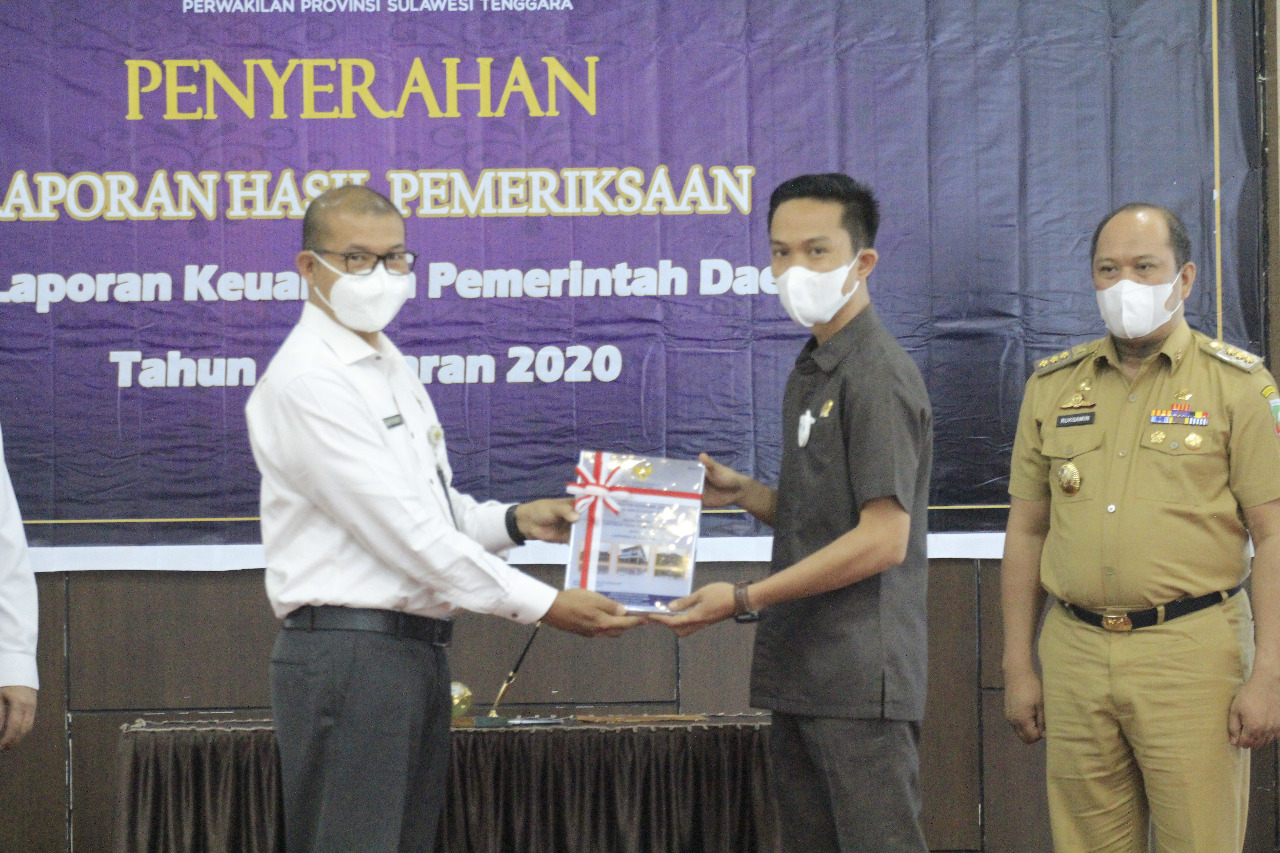 “Saya umumkan Pemerintah Kabupaten Konawe Utara untuk tahun 2020 kembali memperoleh Wajar Tanpa Pengecualian (WTP Red),”kata Kepala Perwakilan BPK Sultra, Andi Sonny usai lakukan penyerahan Laporan Hasil Pemeriksaan (LHP) atas LKPD Kabupaten Konawe Utara tahun anggaran 2020, di Kantor BPK Perwakilan Sultra di Kendari Senin, (31/05 2021).