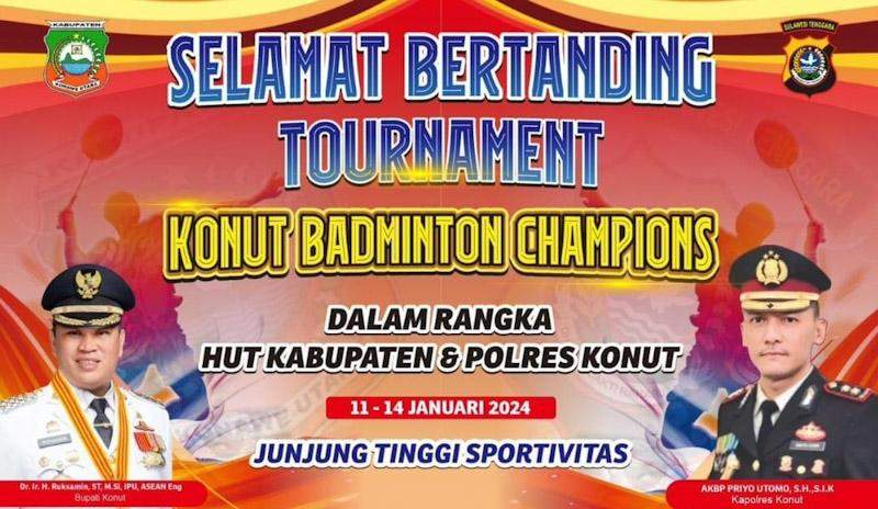 Turnamen Badminton Champions tersebut digelar dalam rangka hari ulang tahun Kabupaten Konawe utara ke-17 dan Hari jadi Polres Konut ke-4 tahun 2024.